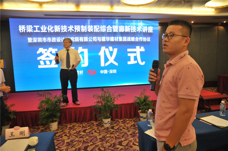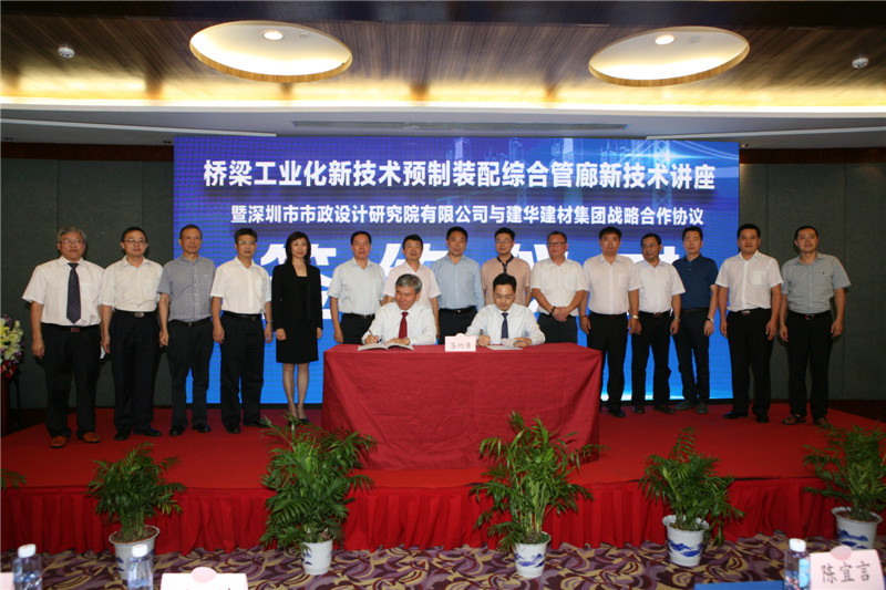為加強院、企合作,提升院、企技術水平和創(chuàng)新能力,有效貫徹國家、省、市建設主管部門關于發(fā)展建筑產(chǎn)業(yè)化的相關要求,促進建筑產(chǎn)業(yè)化在市政工程中的應用,加強行業(yè)間學術和技術交流,2017年10月13日,“橋梁工業(yè)化新技術、預制裝配綜合管廊新技術講座”暨“深圳市市政設計研究院有限公司與建華建材集團戰(zhàn)略合作協(xié)議簽約儀式”在深圳舉行。會議由深圳市市政設計研究院有限公司、建華建材集團聯(lián)合舉辦,并邀請我國市政行業(yè)知名專家學者來深主講,深圳市市政行業(yè)設計、施工、建設、管理單位,以及來自多個省市的市政行業(yè)領導和相關技術人員共200人參會,會議由我公司徐波總工程師主持。