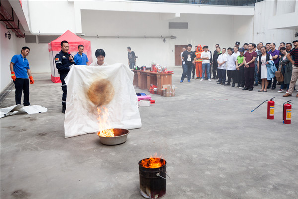 現場演示滅火毯的使用方法 現場演示滅火器的使用方法 現場演示心肺復蘇急救方法 消防大演練合影