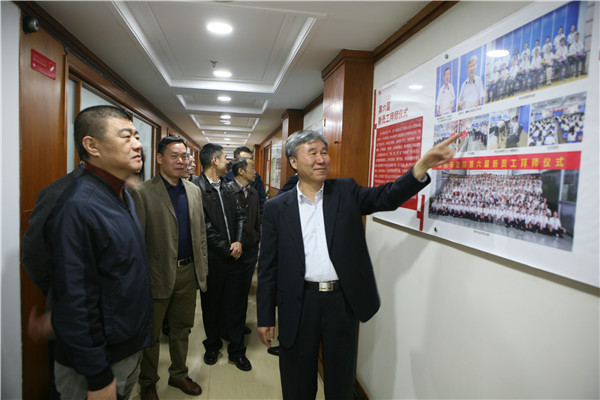 在活動之前,集團公司辛杰董事長一行在陳宜言董事長的陪同下,參觀了我公司的設計成果及學科帶頭人展示墻、陳宜言設計大師工作室、BIM設計研究院和國家博士后科研工作站等部門,還聽取了公司環境藝術所對地鐵大廈環境提升設計方案的匯報。辛杰董事長對市政院的技術團隊、科技成果、企業文化和辦公環境等駐足稱贊,并對地鐵大廈環境提升設計方案給予了肯定,同時要求設計方案做到以人為本,讓員工有更好的工作環境。