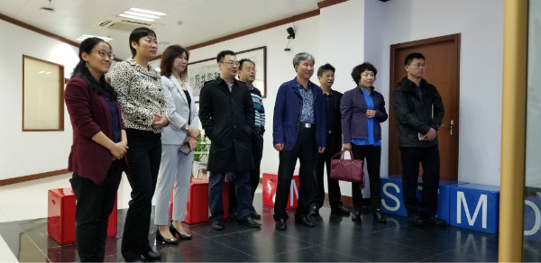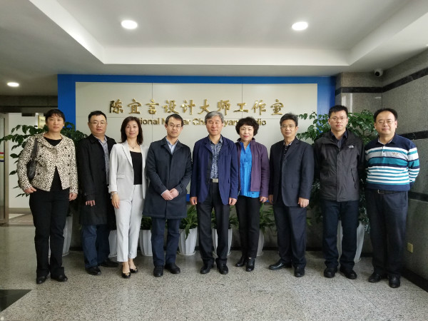 丁陽教授一行在設計大師工作室專家團隊墻前合影