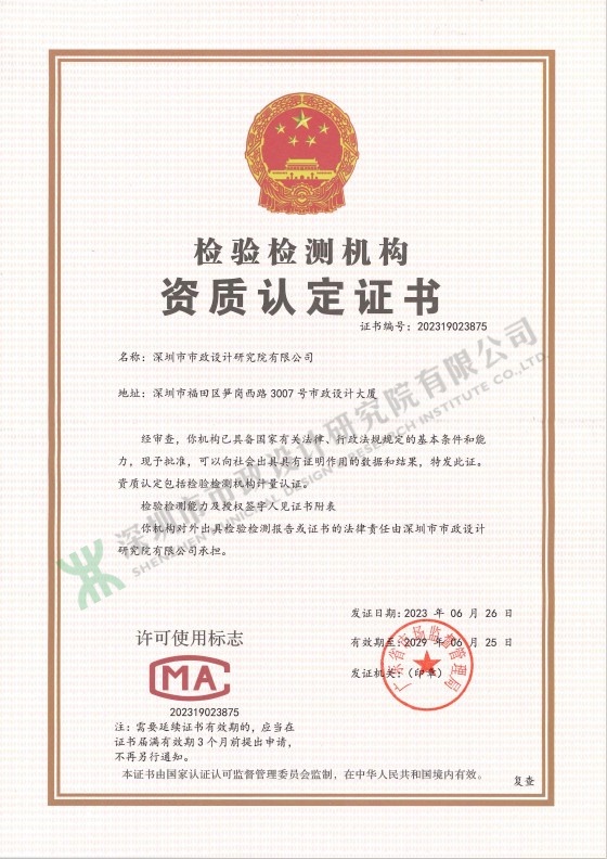 檢驗(yàn)檢測(cè)機(jī)構(gòu)資質(zhì)認(rèn)定證書(shū)(CMA)