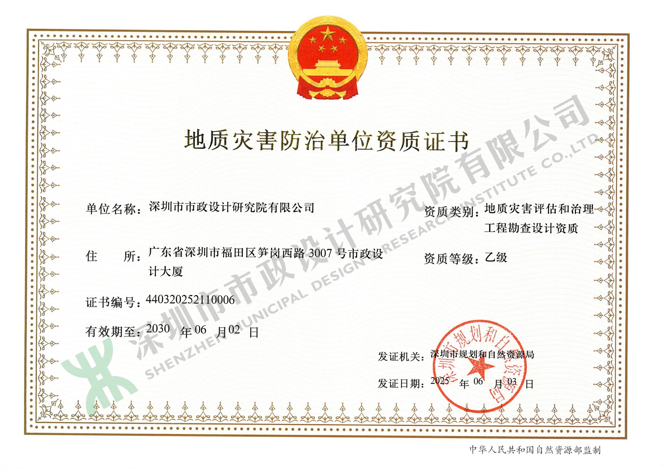 地質(zhì)災(zāi)害防治單位資質(zhì)證書(shū)